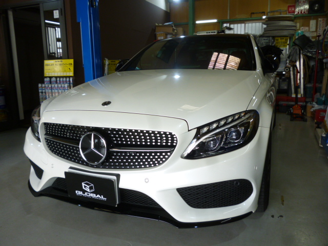 U様 C213カブリオレ アンビエント連動エアコンダクト取付・レーダー取付・エコキャンセルコーティング施工にてご入庫です。