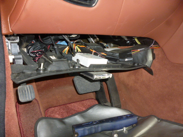 まずは作業するにあたりしっかりと養生していき、センターコンソールパネルの取外し作業です。ここで配線処理をしていきます。