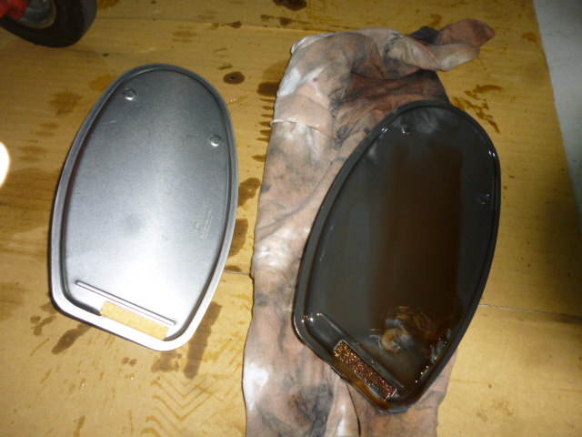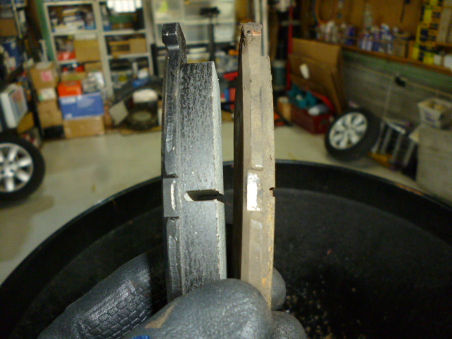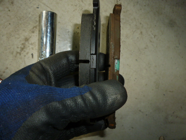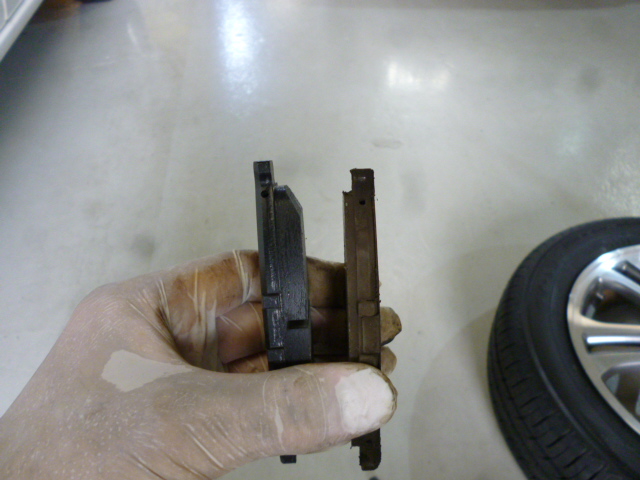 フロントブレーキパッド残量が少なくなってきていた為、交換作業です。新旧ではこの通り。グリースも塗り塗り、完成です。