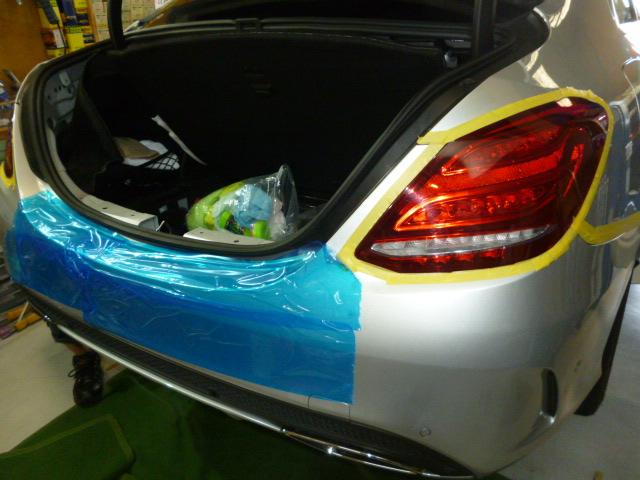 作業するにあたり、大事なお車に傷がついたり、汚さないよう養生をしていきます。