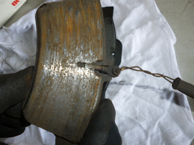まずは、リアブレーキパッド交換。残量1mm程となっておりました。