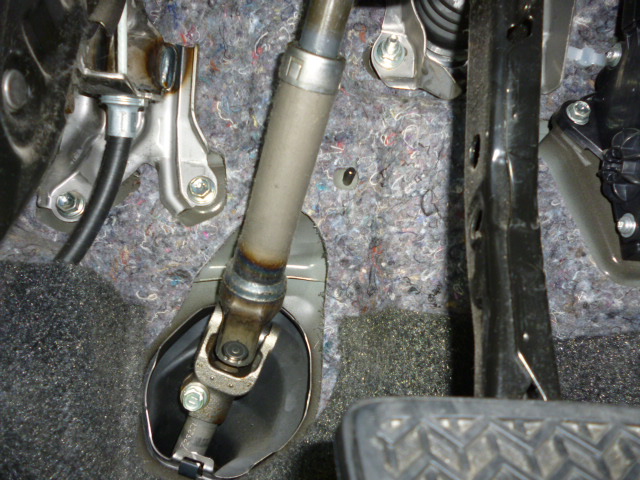 ハンドルを左右に動かすと、コクコクといった異音が出ておりました。ハンドル下にある、ステアリングシャフトのジョイント部分にガタつきがあり、そこから発生している異音でした。交換後、異音解消、ハンドルセンターを調整して完成。