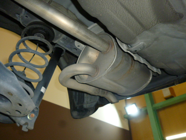 取付にあたり、マフラーカッターの位置調整など、、メカニック2人により頑張って作業してもらってたのですが。
