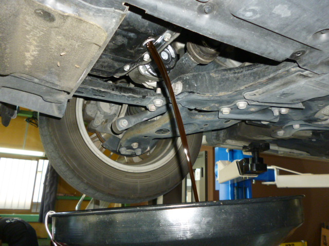 車検時必須項目のブレーキオイル交換、交換距離がこえていたため、エンジンオイル・オイルフィルターの交換を。