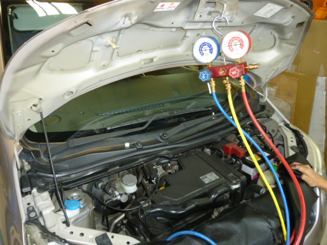 エアコンガス圧の点検とガス補充、ストップランプ球の交換。