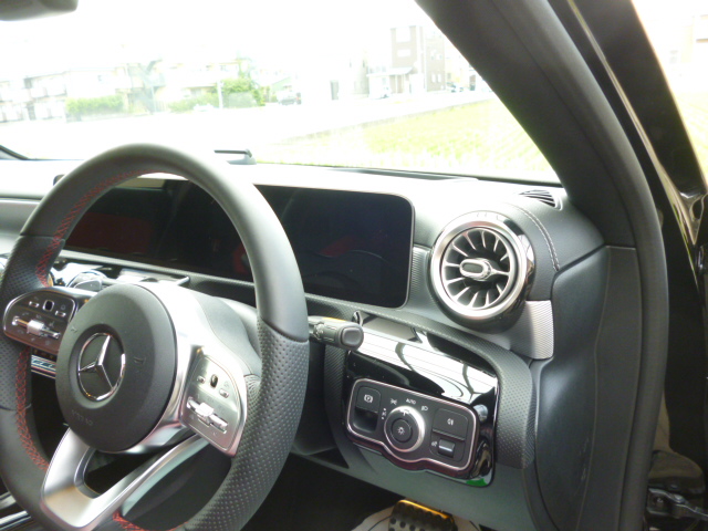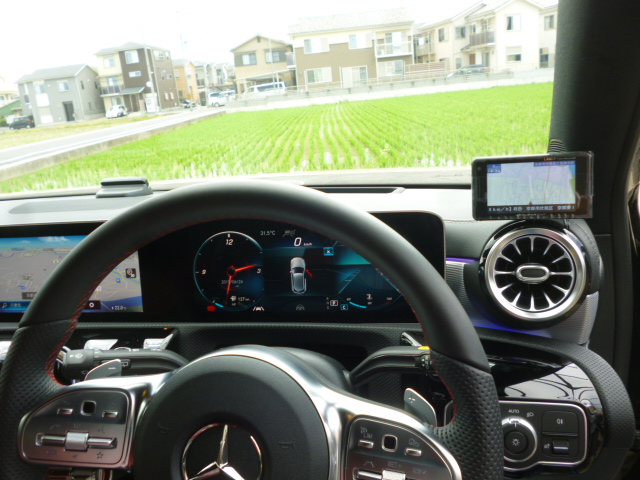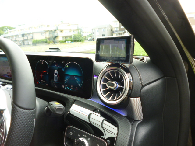 じゃーん!ダッシュボードへ取付やフロントガラス上部に取付も可能ですが、ここもシンプルにいいですよ(#^^#) W177でオススメのポジショニング!