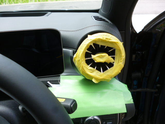 取付位置は、当社MBworksデモカーにも取付させていただきました、運転席側エアコンルーバーに。(MBworksブログに載っております)