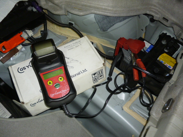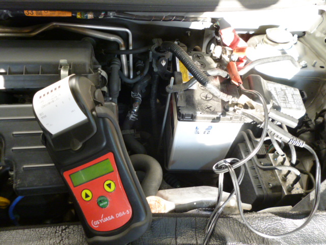 バッテリー出力点検。エアーエレメントなど、各項目取り外して1つずつ状態をチェックです。