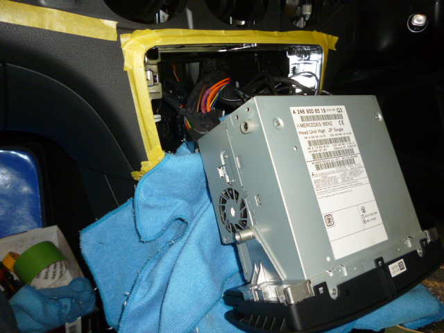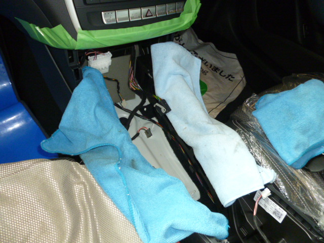 有線ミラーリングさせていただく為に必要な、ケーブル・アダプターなどを事前にご用意。センターユニットをばらして取付していきます。