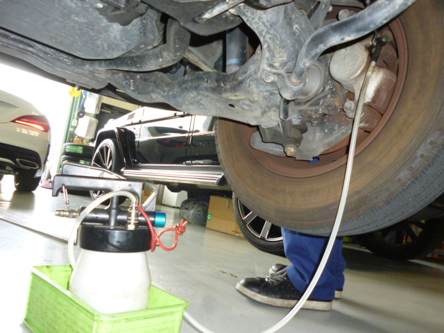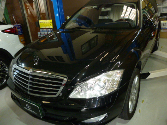 M様 W221(霊柩車) ブレーキオイル・左フロントドアユニット交換です。