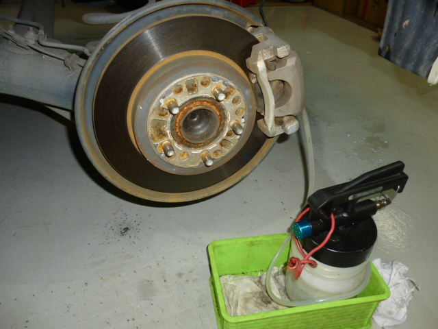 テスターを使用し、ブレーキオイル交換。車検時必須項目です。