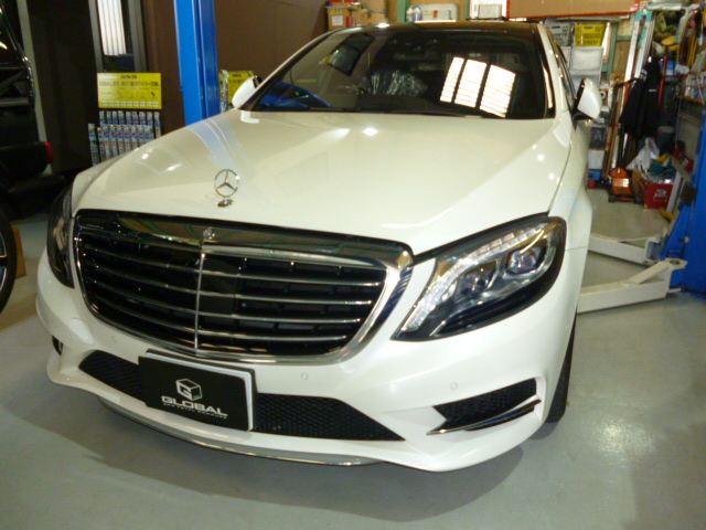 I様 W222 前後低ダストブレーキパッド交換、TVキャンセラー取付、デイライトコーディング施工にてご入庫です。