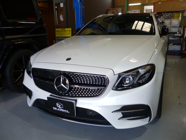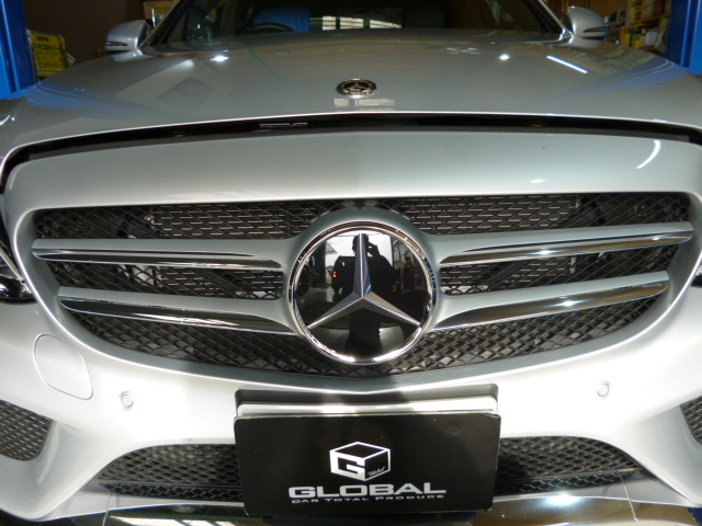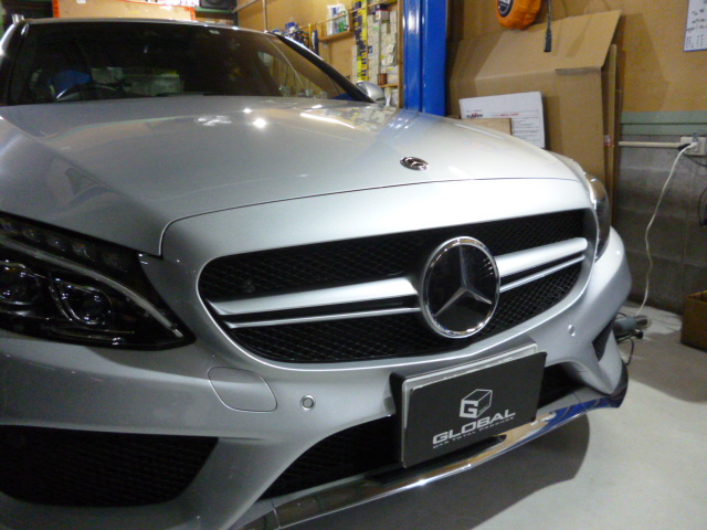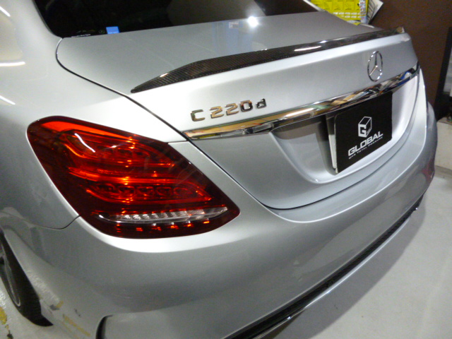 O様 W205 C63フロントグリル交換、リアスポイラー取付です。