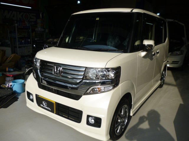 ご納車にあわせ、ヘッドライトバルブ変更・ナンバー灯LED・ミラーリング施工・ガラスコーティング施工などをさせていただきました。