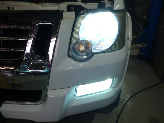 O様 エクスプローラー 作業すすめております。フォグランプHIDバーナー交換です。