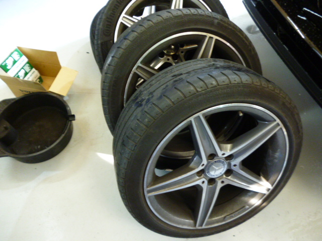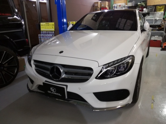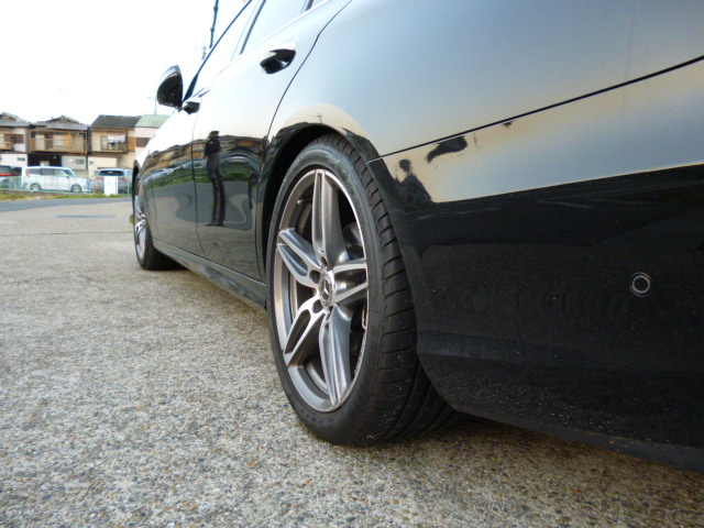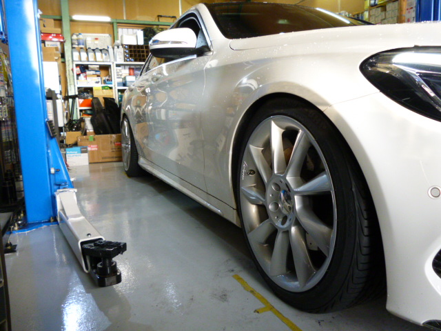 Z様 W205 ロワリングキット取付、ホイール交換、前後低ダストブレーキパッド交換です。