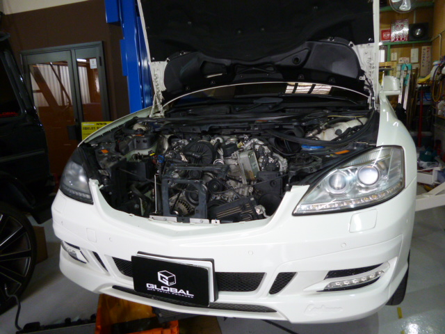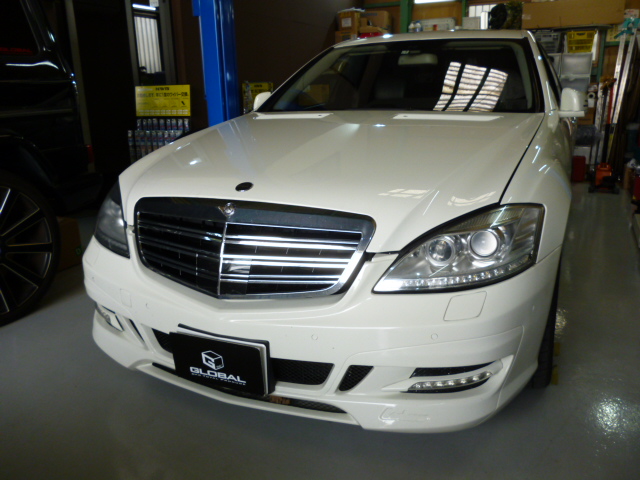 M様 W221 エンジンオイル・オイルフィルター交換、フロントグリルなどの交換にてご入庫です。