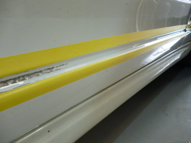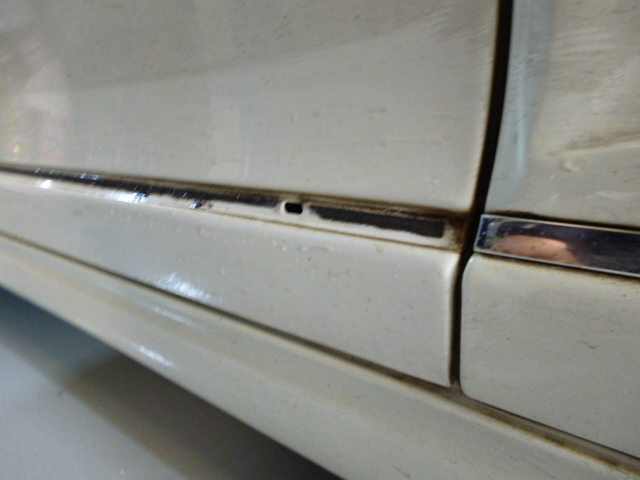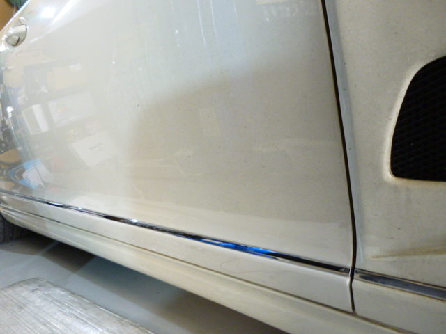 まずは、右フロントドア↓のメッキモールがとれてしまっていたので、新しいモールを取付する為に、清掃して両面テープなどの残りを綺麗にしていきます。