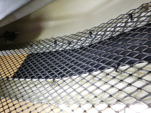 次は、フロントバンパー下のメッシュ部分がとれかかってしまいぶらぶらしていたので、裏から取付部分の補修修理をさせていただきました。走行中に取れたりすると危ないですからね(*_*)