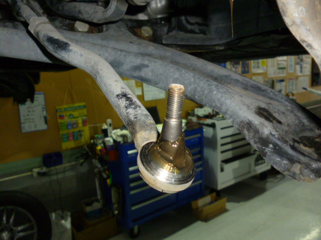 タイロッドエンドブーツが劣化により破れてグリース漏れしておりましたので交換作業です。こういったブーツ類の破れ等は車検基準不適合となりますので、交換必須項目です。