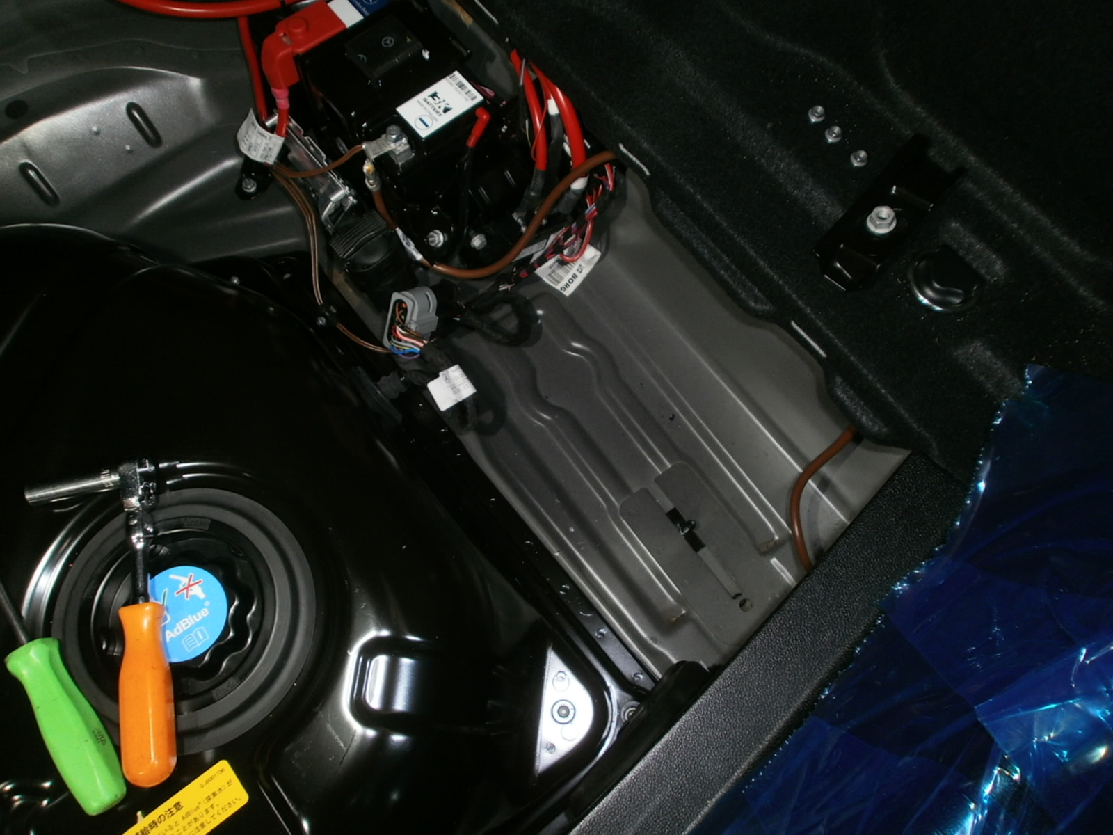トランク配線を点検していくと、アース線が2本断線。