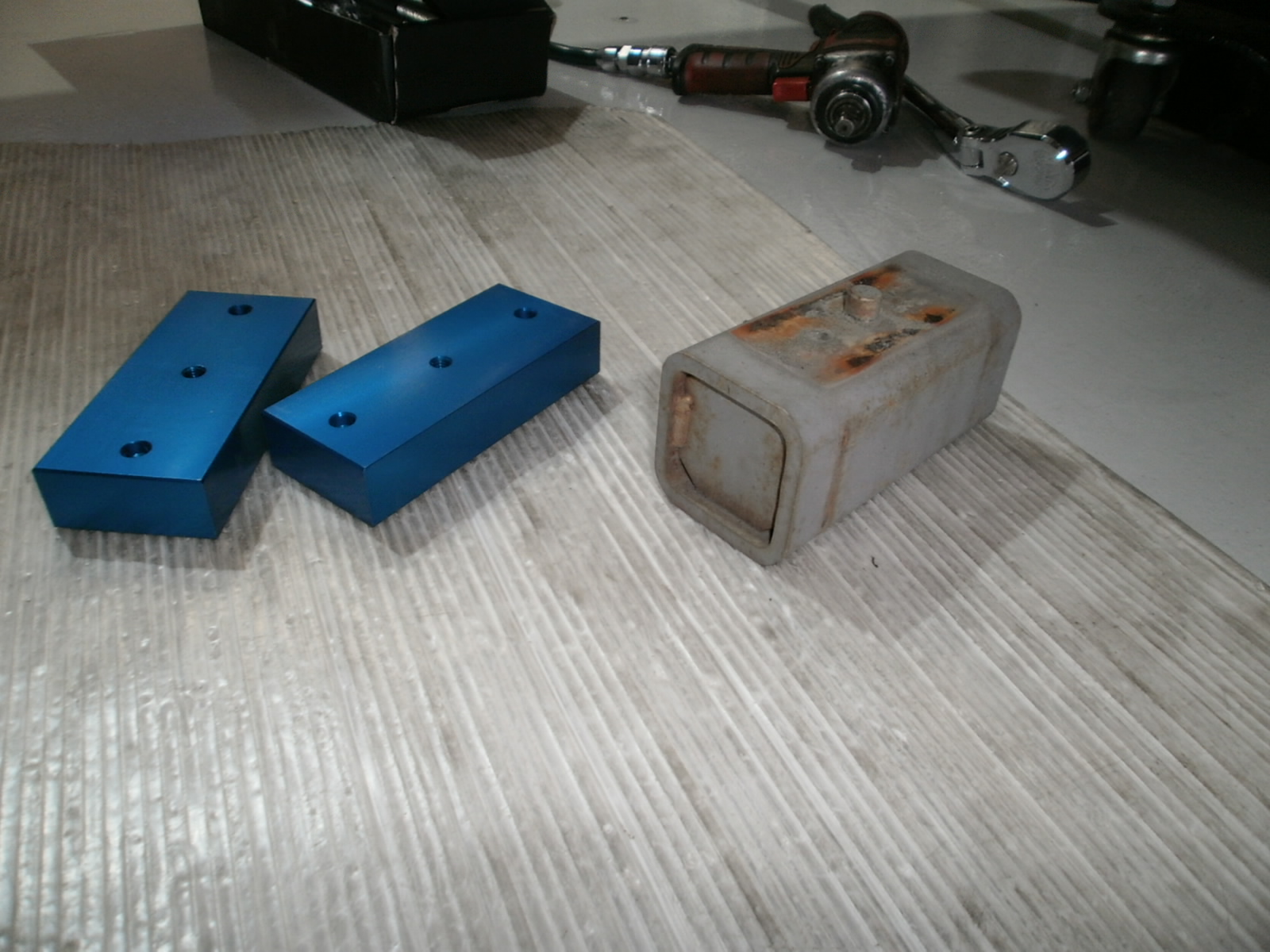 ローダウンブロックの変更、Uボルトなどももちろんあわせて交換ですね。フロントは、トーションバーにてお好みの車高に調整させていただきました。