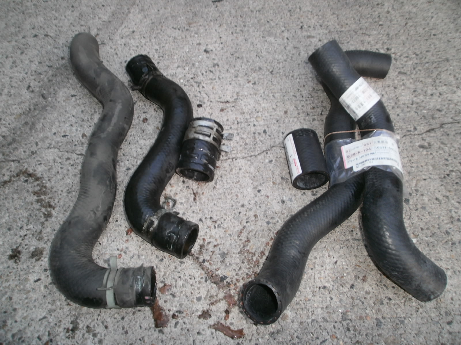 クーラント漏れにて各ホース類交換です。交換後は、漏れがとまっているか確認して完了です。