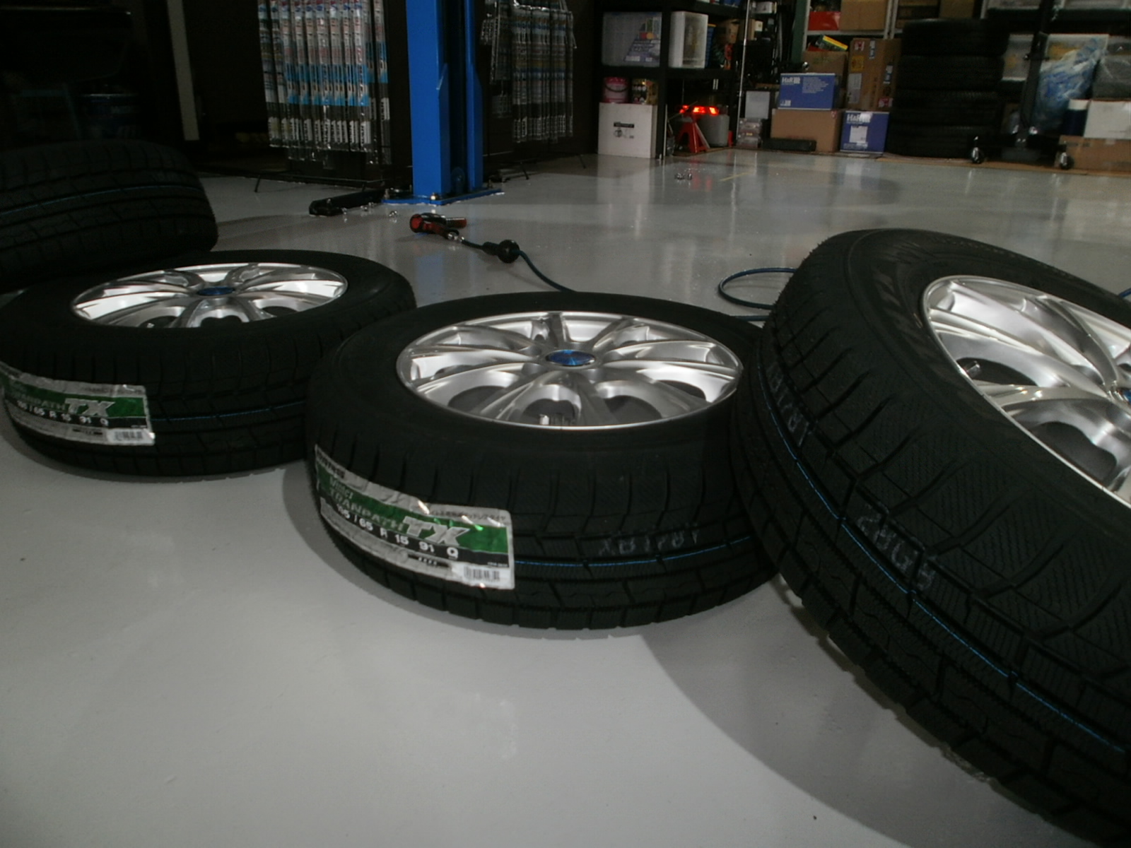 スタッドレスタイヤセット、ミラー内臓レーダー取付です。