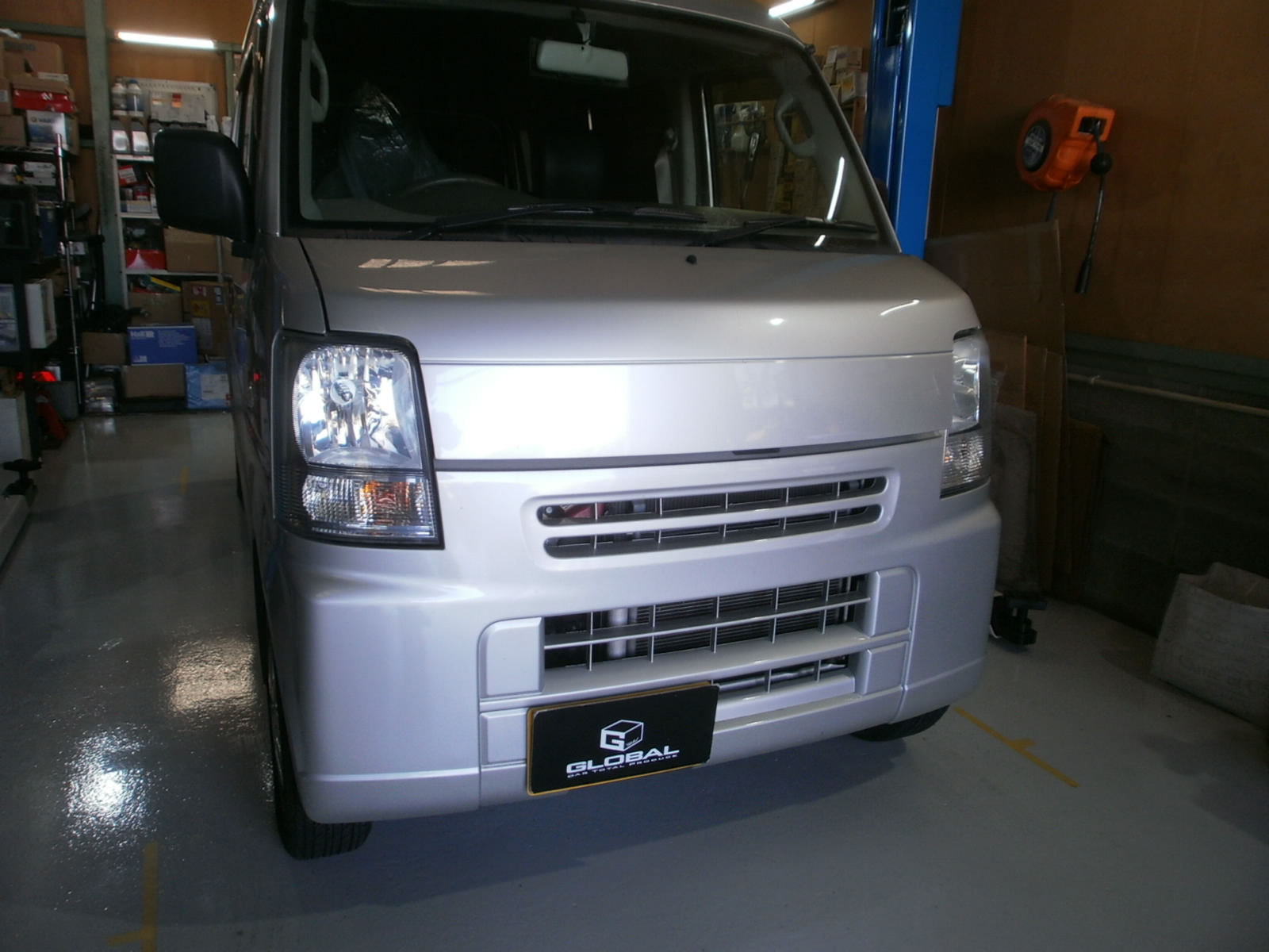 N様 ミニキャブトラック エンジンオイル・オイルフィルター交換、ヘッドライト片側点灯不良にて点検ご入庫です。