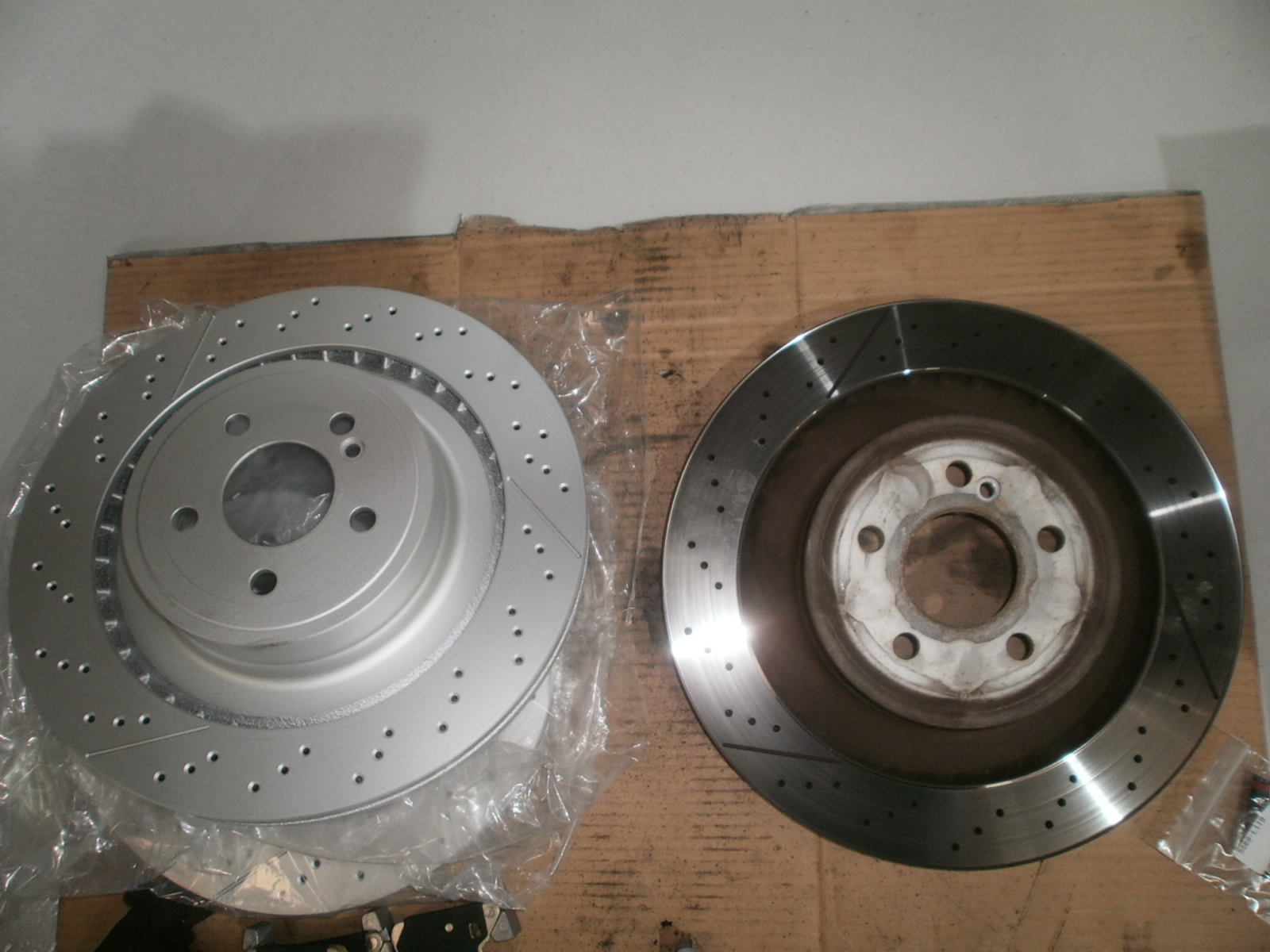法人ユーザーE様 AMG E63 リアブレーキローター・ディスクパッド・センサーの交換にてご入庫です。
