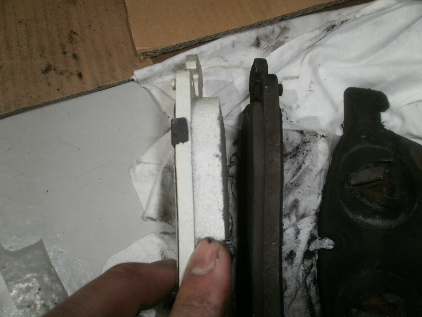 以前ご入庫、点検させていただき、交換のご提案をさせていただきました。今回ローターの交換とあわせて、ディクセルの低ダストブレーキパットをご用意させていただきました。