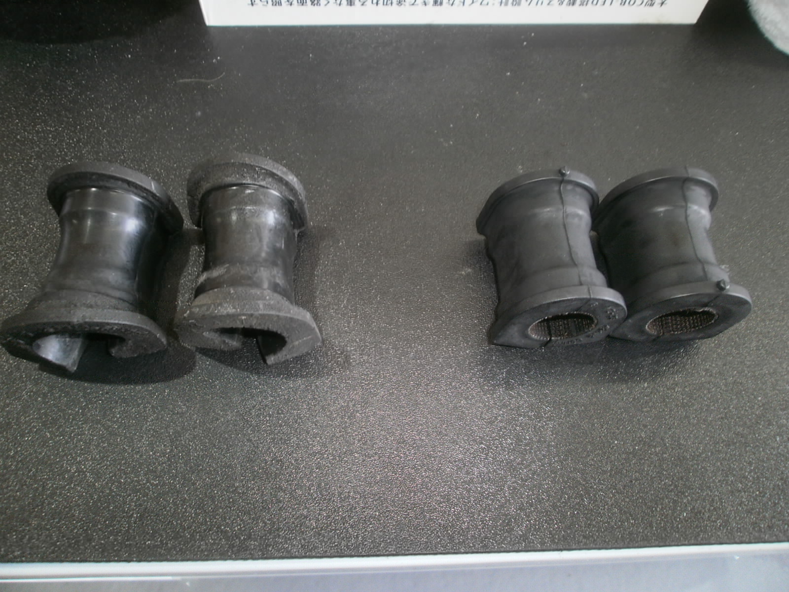 足廻り異音にて点検させていただき、左右フロント・スタビライザ・ブッシュの摩耗による異音でしたので、部品交換させていただきました。