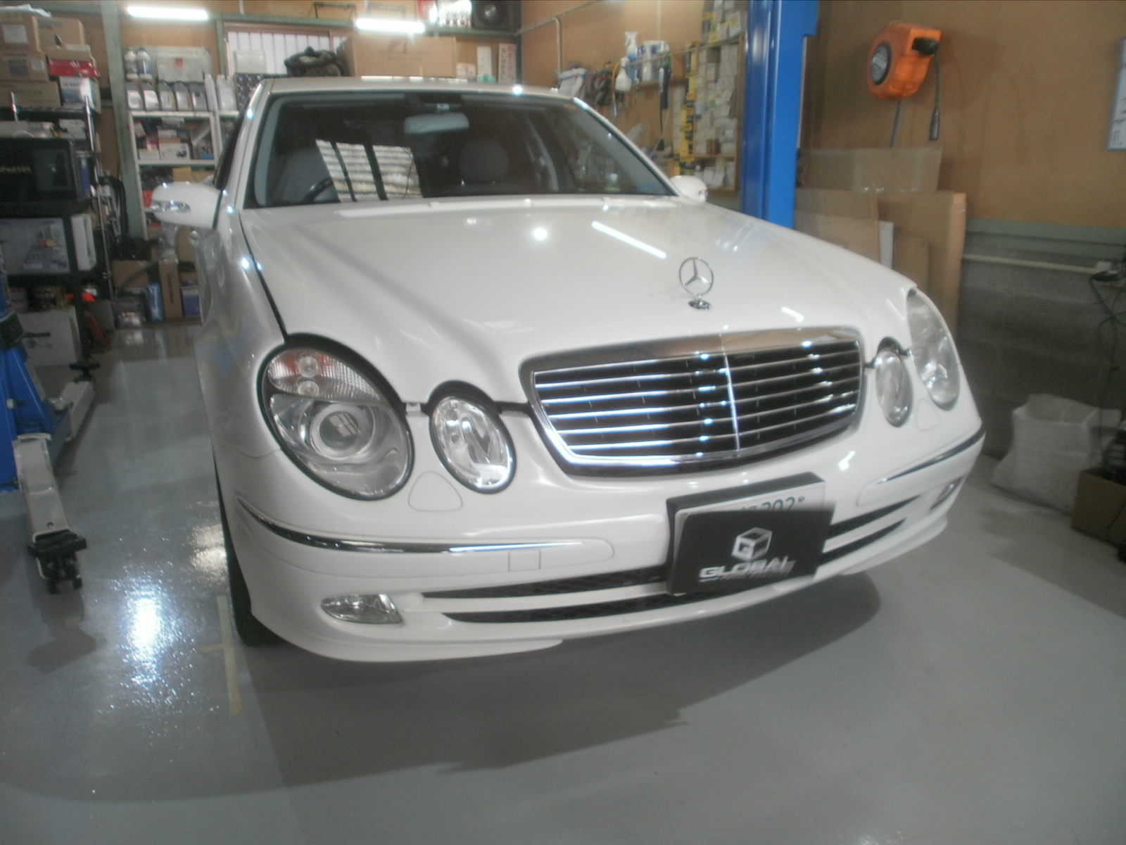 H様 W211 エンジンオイル交換にてご入庫です。