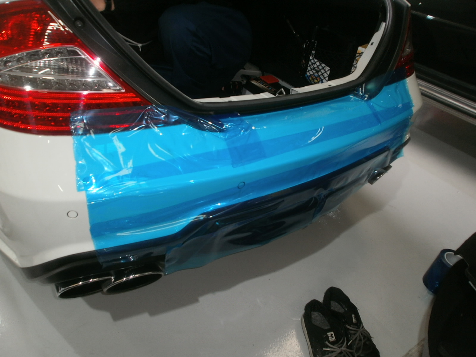K様 CLSクラス ロワリングキット・トランクスポイラー取付です。