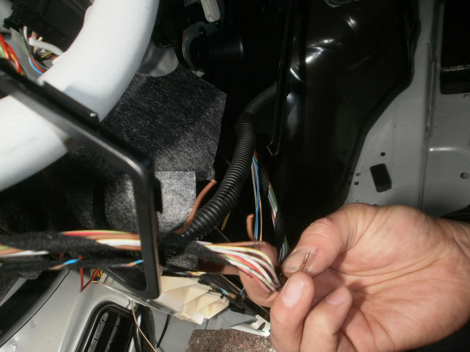 社外HIDをつけられており、ヘッドライト裏のカプラー配線が腐食により接点不良をおこしておりました。カプラー分解、接点修正をし、ハーネス処理等させていただき、完了。