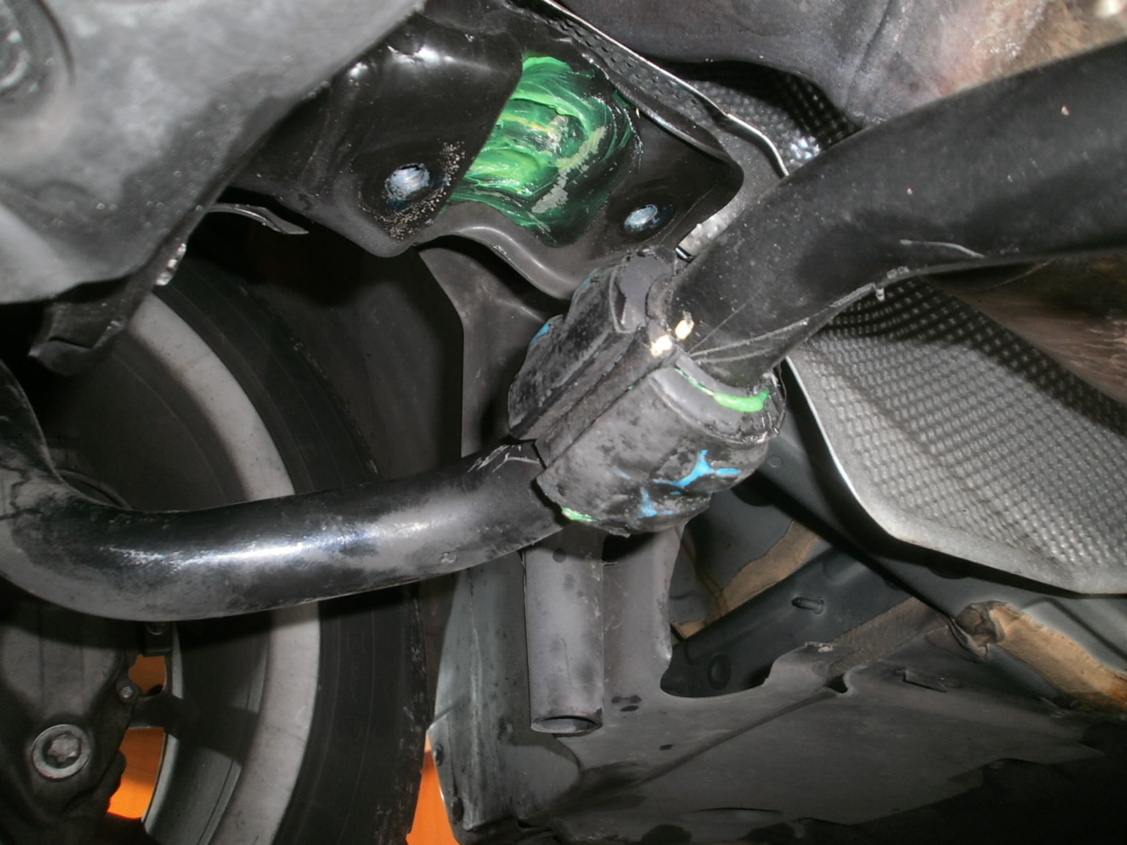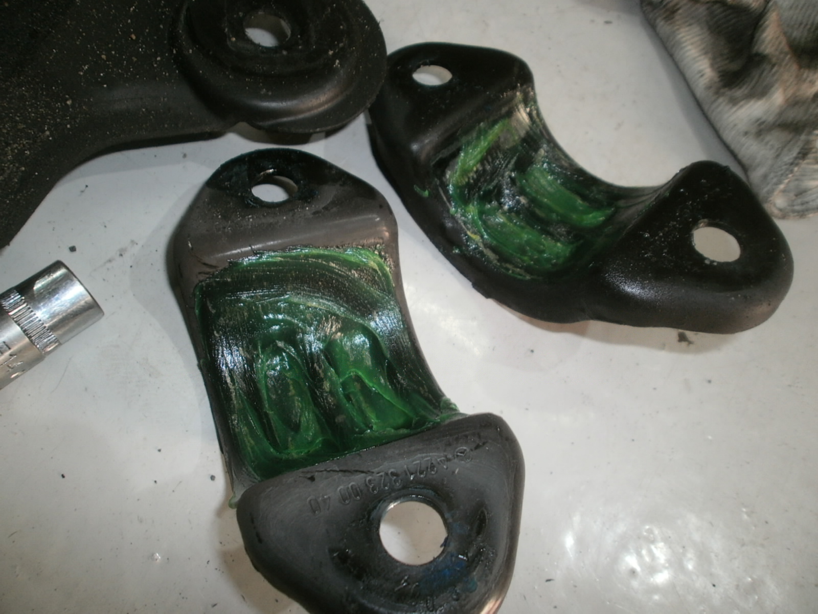 O様 W221 スタビブッシュのグリースアップ作業。順に作業すすめております、今しばらくお待ちくださいませ!