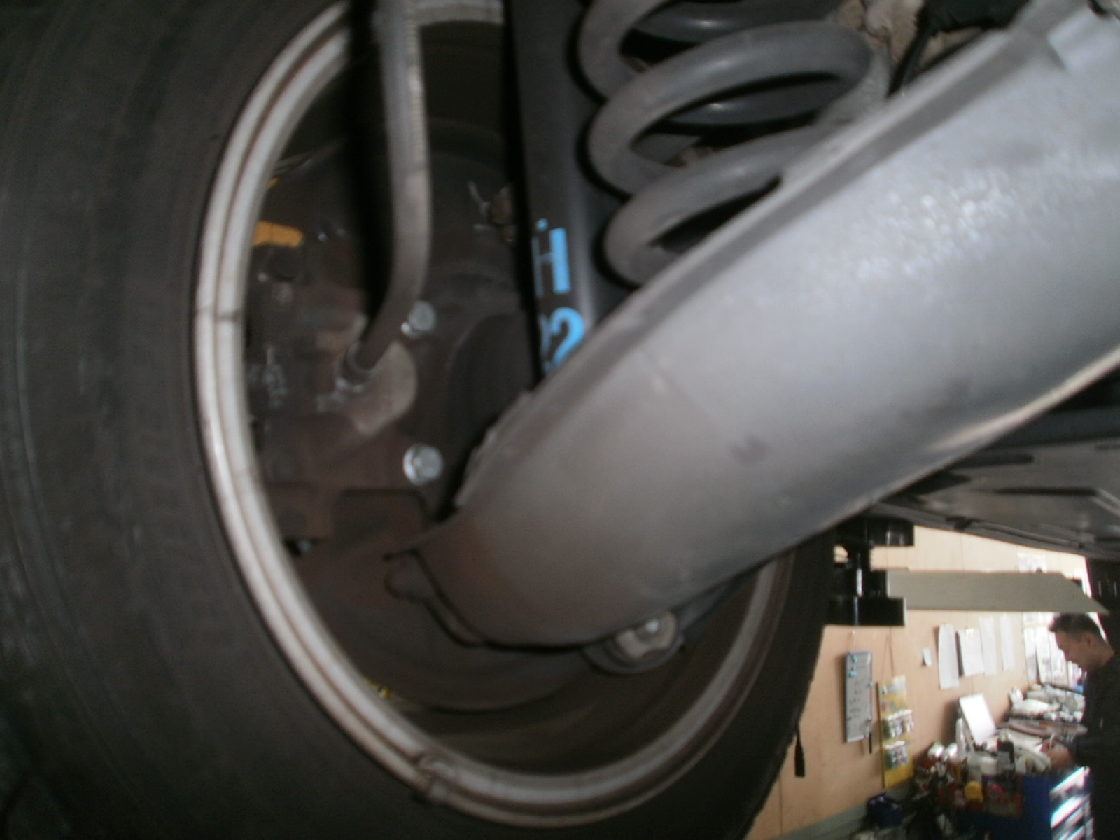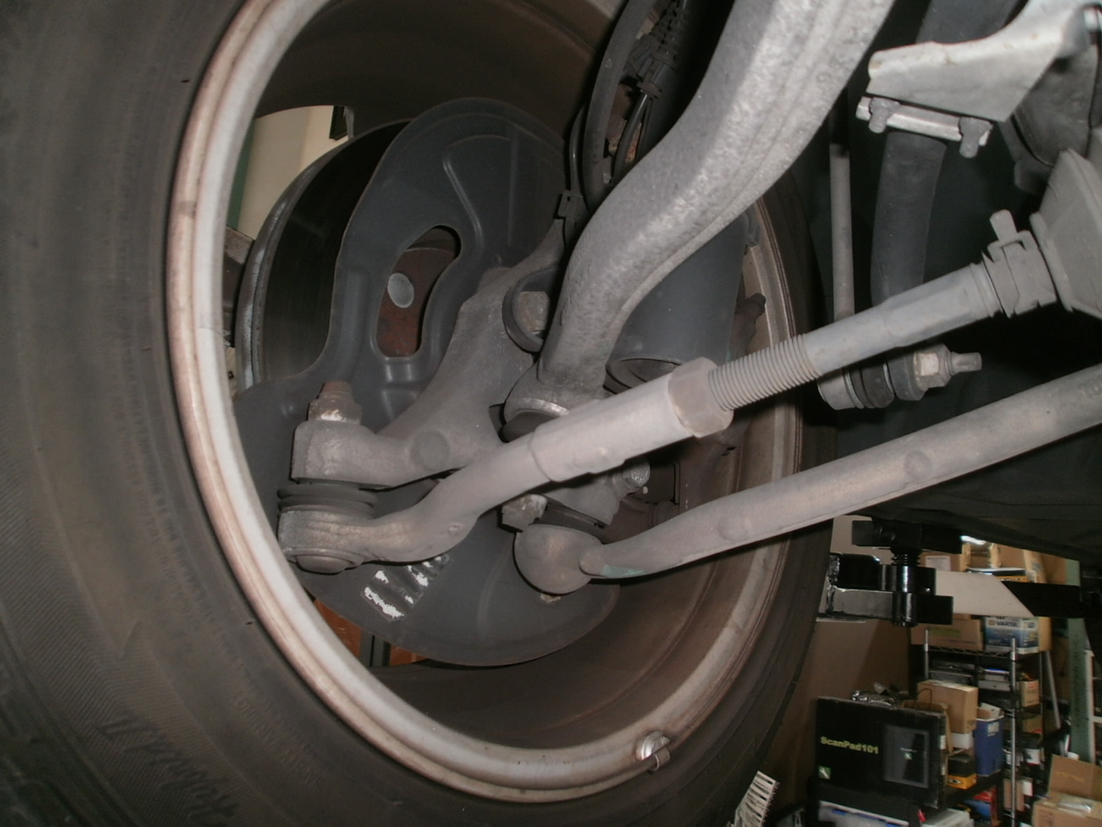 リフトアップして調整中、フロントタイヤの内減りを発見。