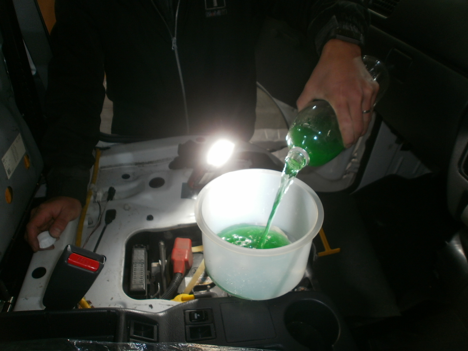 ディーゼル車ですので、ディーゼルワンを注入。スペアタイヤの空気圧点検もしっかりしております!