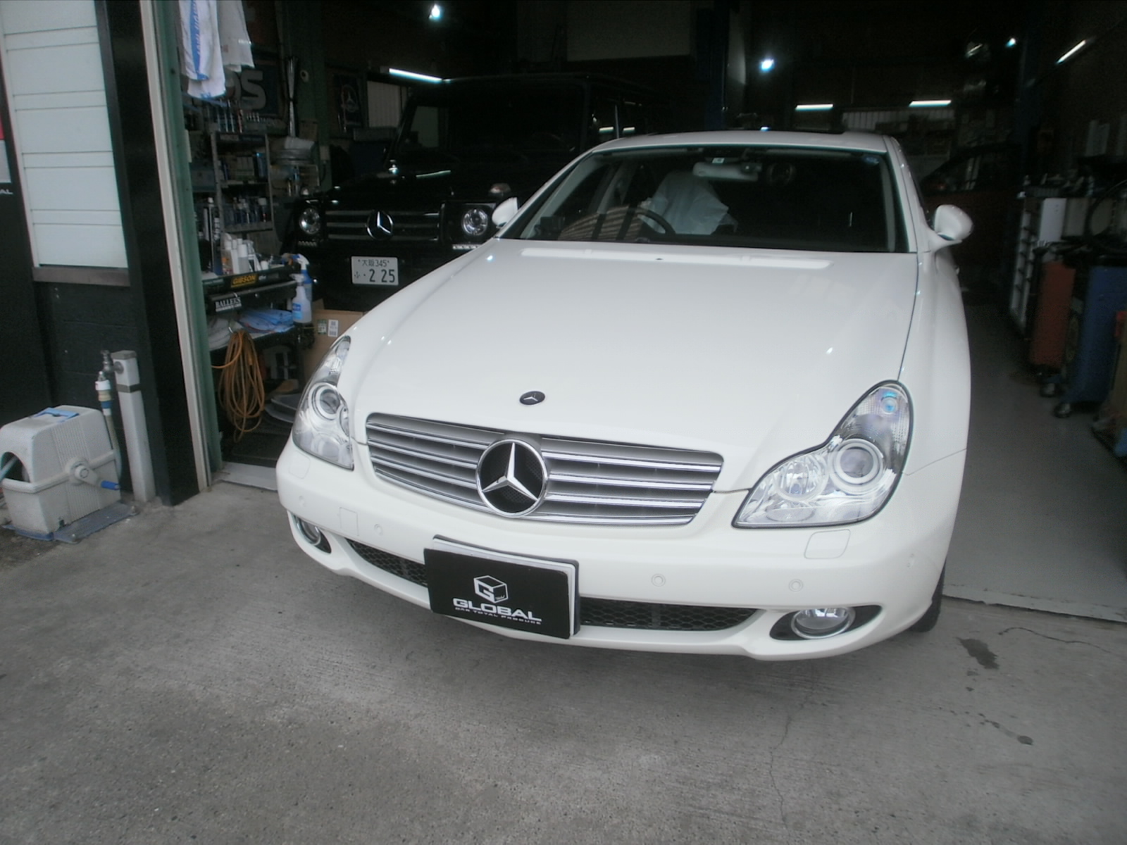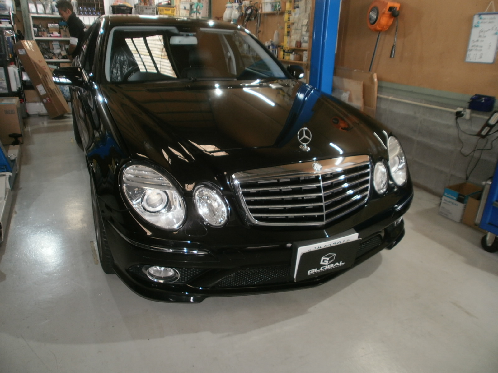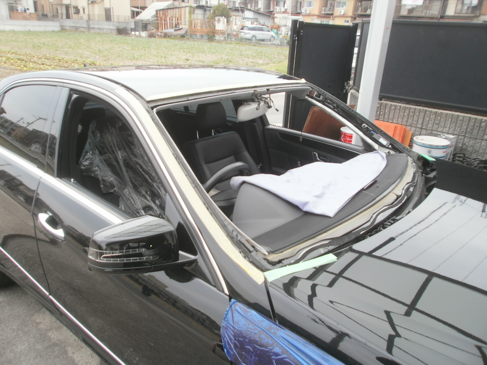 W様 W212 フロントガラスひび割れにてフロントガラス交換にてご入庫です。