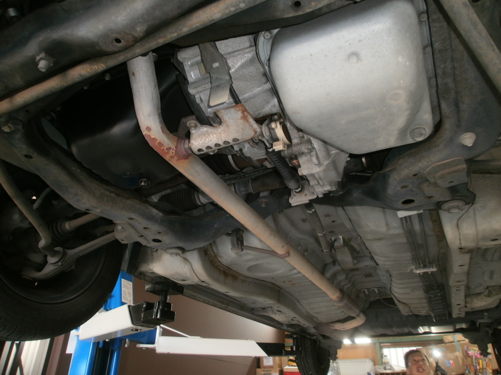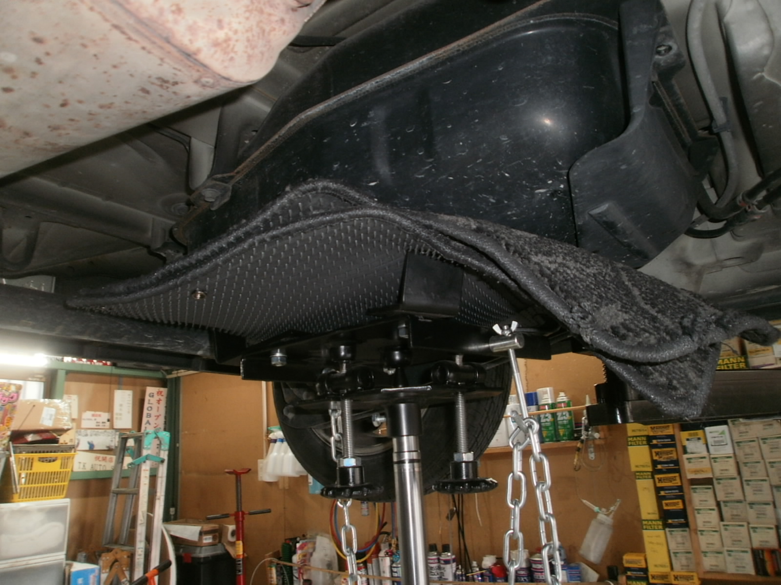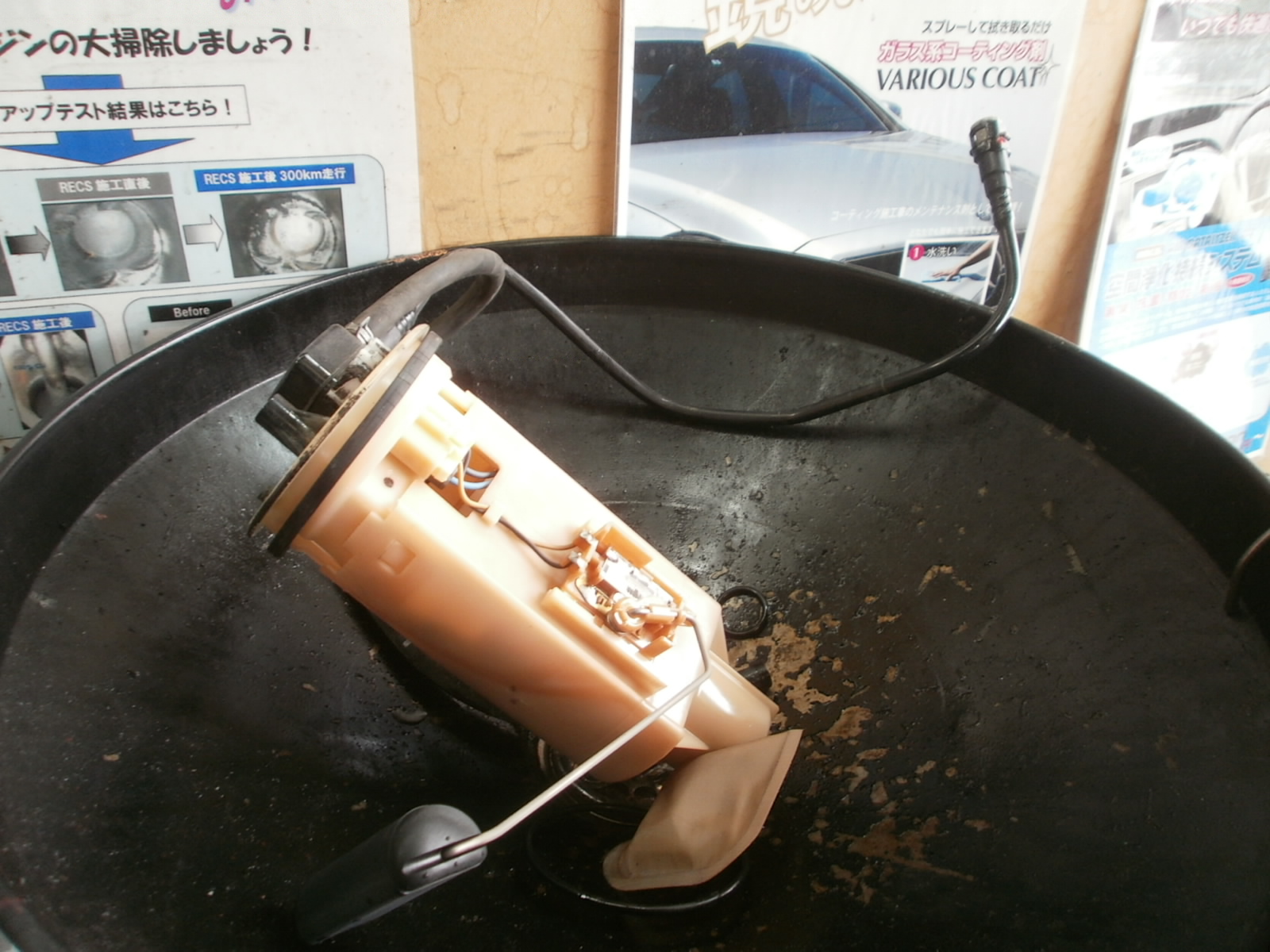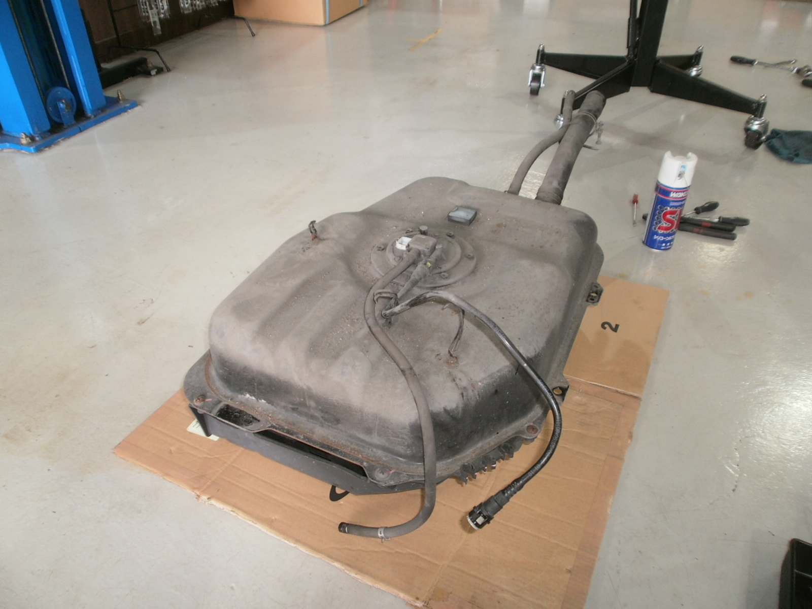 まずは、燃料タンクをおろしていきます。この車種は、室内からのサービスホールがないんですよね。