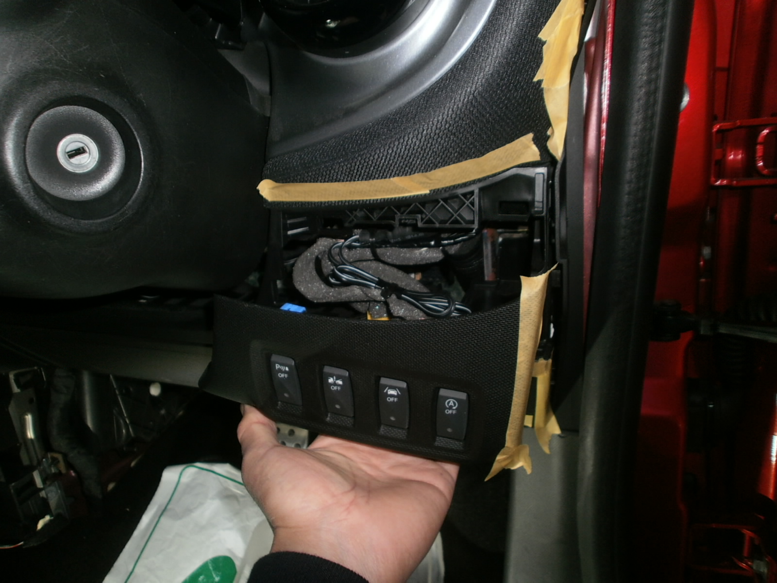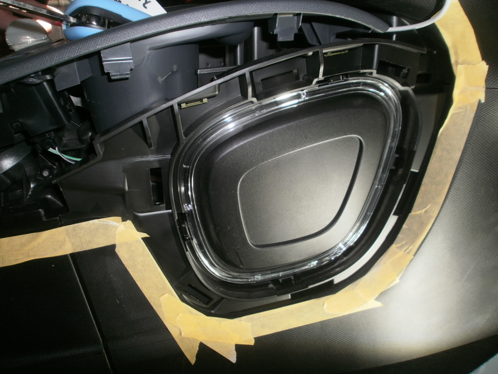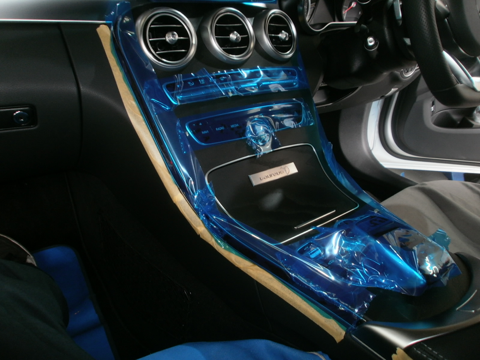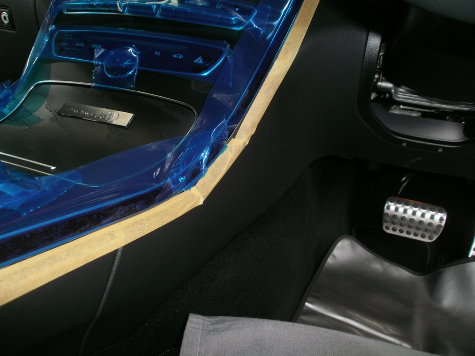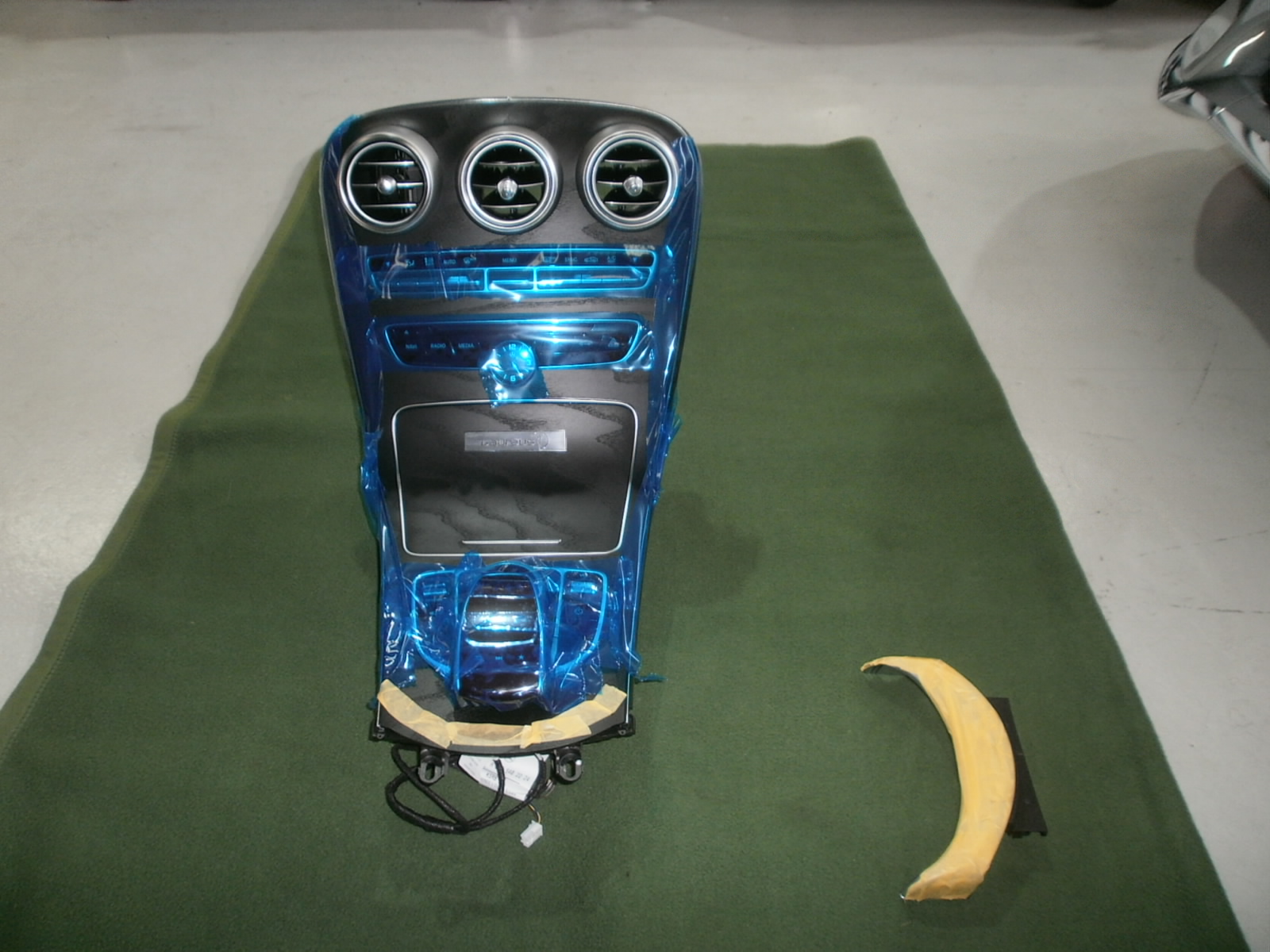 まずは、センターパネルを取外しいくため、まわりを養生をしていきます。パネルを外せたら、時計を取外して交換させていただきます。
