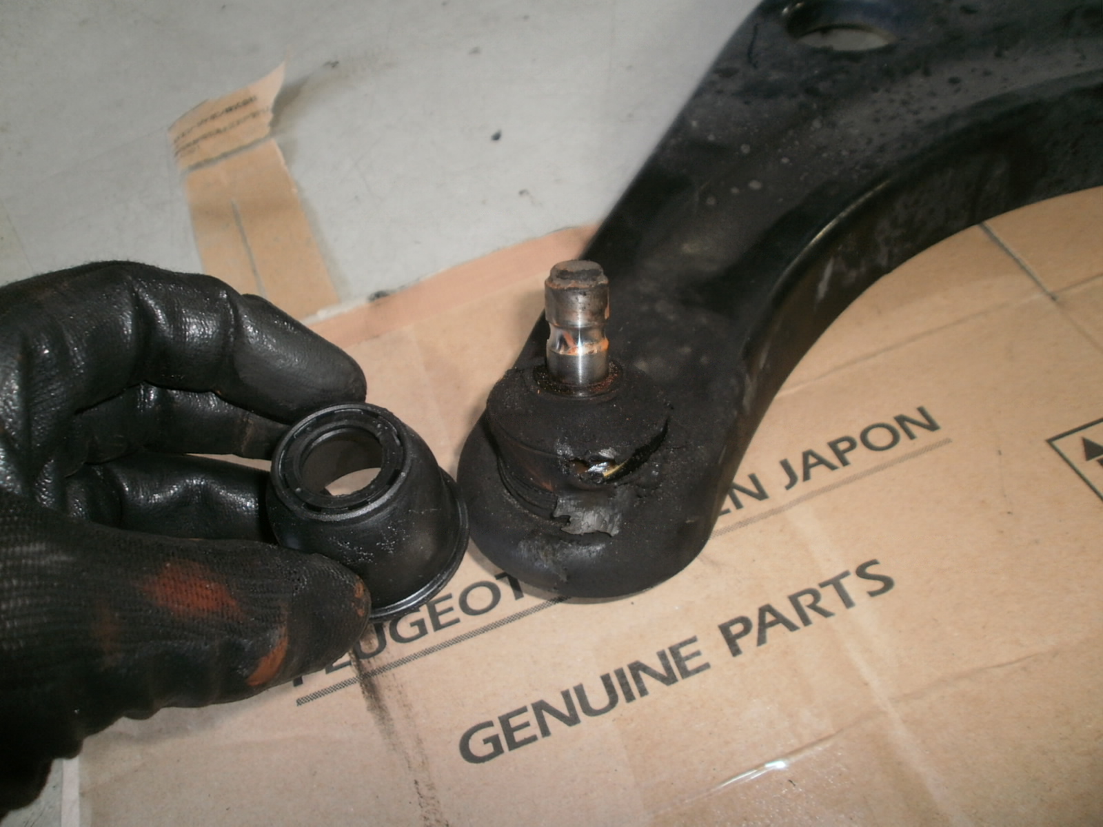 左フロントロアアームボールジョイントブーツが破れておりましたので、交換。