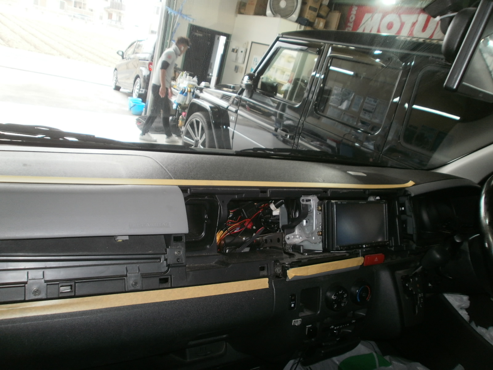 純正オーディオから社外ナビを取付です。本体と別で地デジチューナーも取付けていき、完成です。(言葉では簡単そうですが、なかなかと、、、Y氏スタッフに頑張ってもらいました)