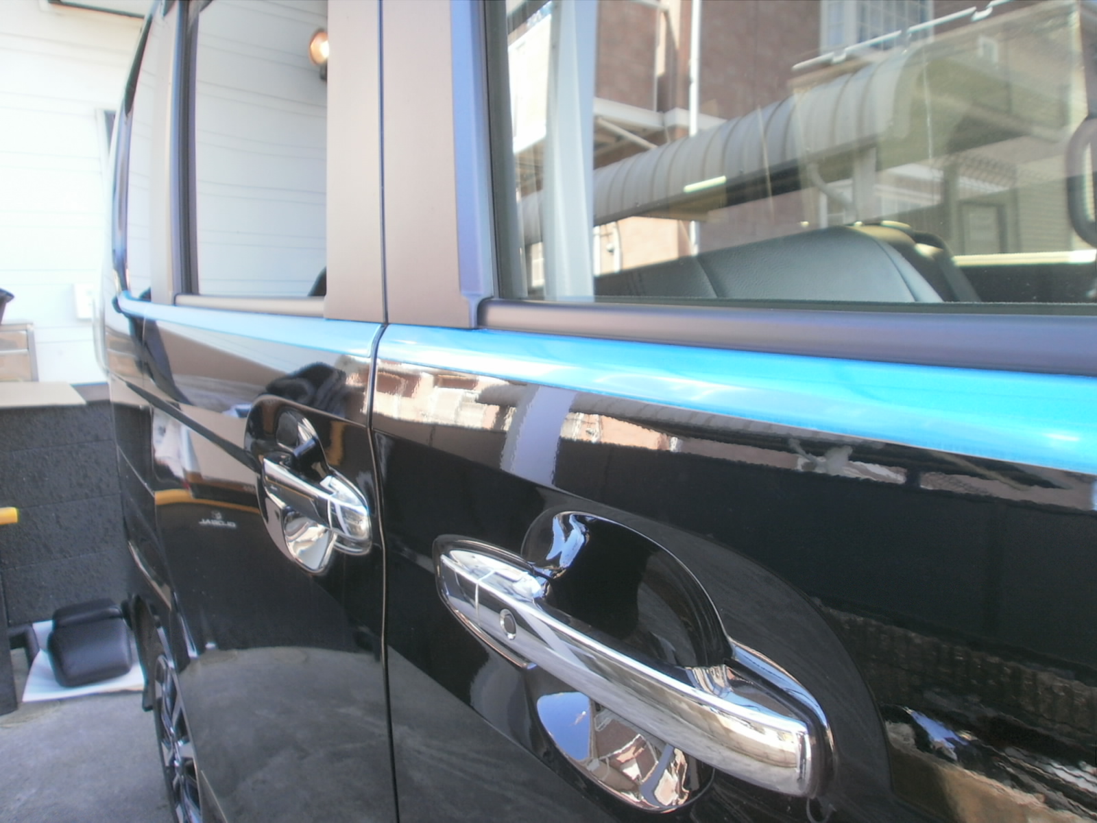 そして、ちょこっとカスタムを!ドア上部のモールをメッキパーツの貼り付けです!