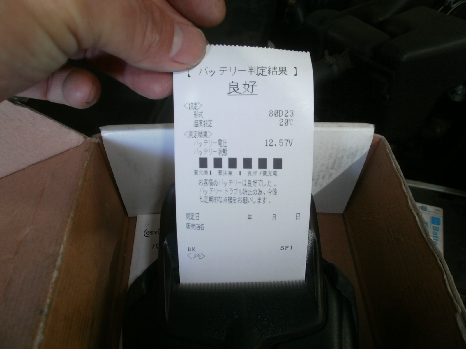 エンジン関係の点検からいきましょうか、バッテリー出力点検も1台1台しっかりしております!