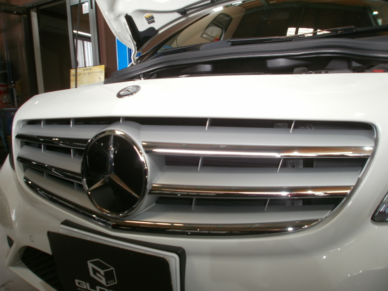 I様 Bクラス フロントグリル塗装にて初ご入庫です。