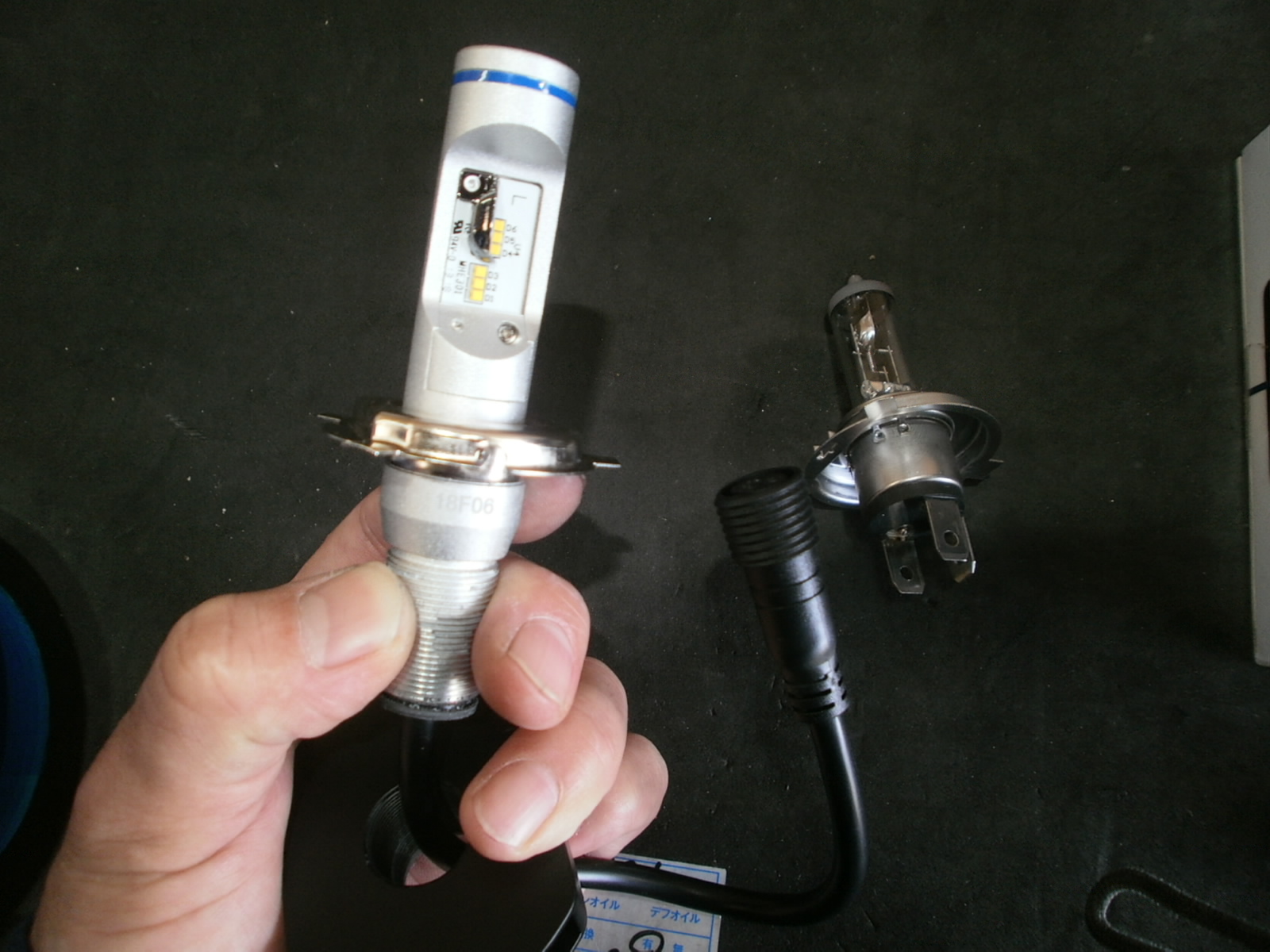 まずは、最近当社にお問い合わせの多い、ヘッドライト・フォグランプのLED化。PHILIPS 製のLEDバルブを使用させていただきました。