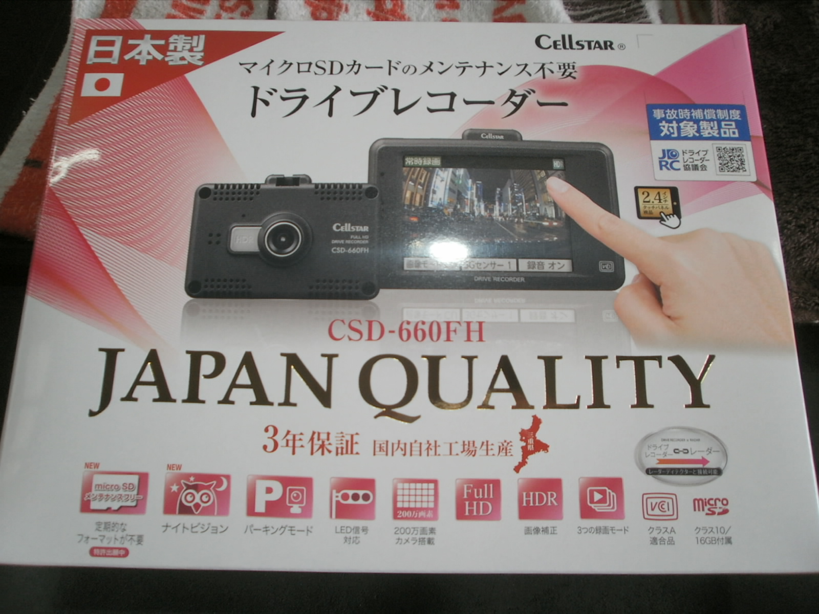 セルスターのドライブレコーダーをご用意させていただき、駐車監視システム作動させるよう、専用ケーブルもご用意。取付させていただきました。