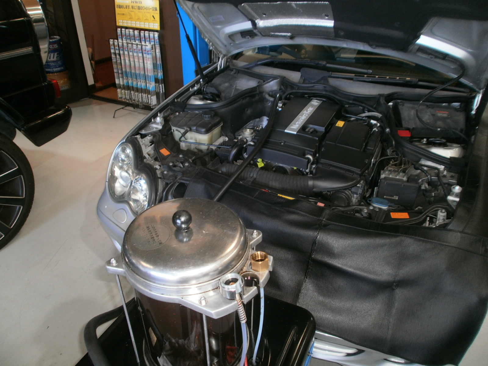 H様 Eクラス エンジン洗浄剤RECS施工にてご入庫です。