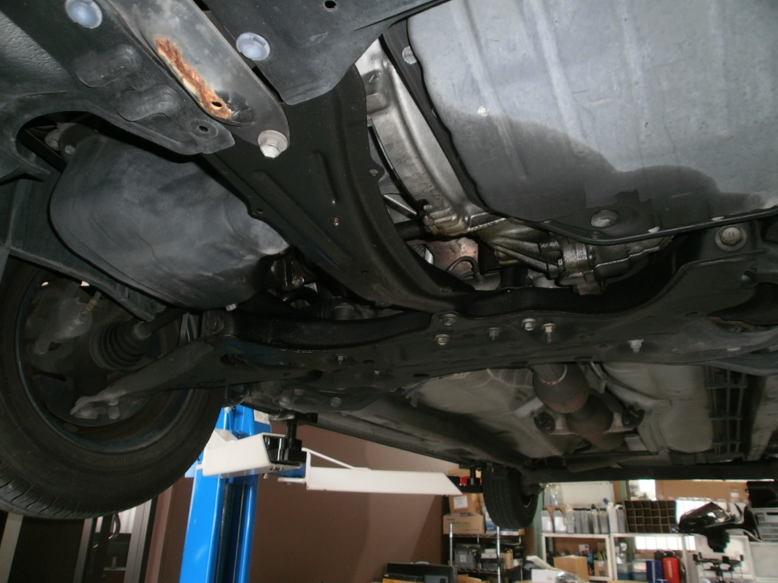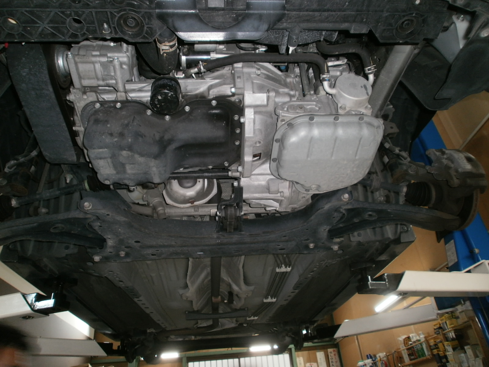 さーて、Y氏による整備点検開始ですっ!リフトアップしてしっかり見ていきましょう!